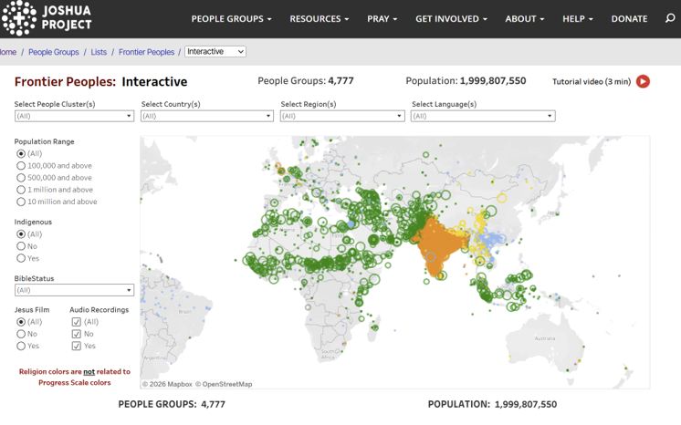 In this possibly short time window, we need to especially multiply both prayer and mission efforts to ignite movements for Him in every one of the Frontier People Groups. These Frontier People Groups are the least reached, with only one person on average per thousand or no known Jesus followers at all. According to the Joshua Project, which has faithfully researched and kept track of the status of the unreached peoples of our world, there are still 4700+ of these Frontier People Groups. They all have little or no Christians and make up about 2 billion people or a quarter of the world's population still needing to hear about Jesus for the first time ever.